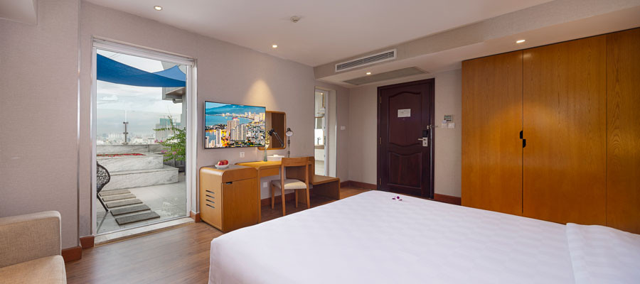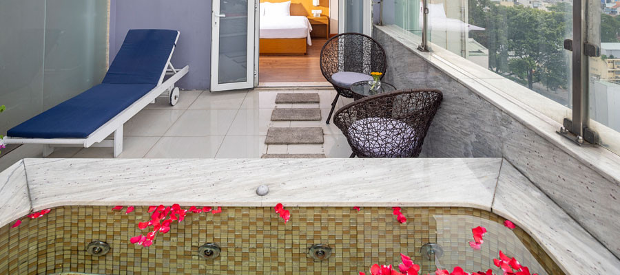 Tự hào là khách sạn đầu tiên ở Sài Gòn Room, Phòng Suite được trang bị một bồn tắm Jacuzzi riêng ngoài trời và bồn tắm sang trọng bên trong . Không gian 48m2 Harmony Suite cam kết mang lại cho Qúy khách trải nghiệm tuyệt vời và ấn tượng.